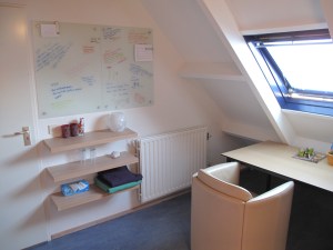 Wir bieten zwei gemütliche, ruhige Einzelzimmer im Dachgeschoss. Die Zimmer verfügen über ein frisch gemachtes Bett, einen Schreibtisch, bequeme Sessel und eine stimmungsvolle Beleuchtung. Außerhalb des Zimmers ist eine private Küchenzeile mit Kühlschrank und Wasserkocher, wo Sie Kaffee oder Tee zubereiten können. Und natürlich gibt es einen kostenlosen Highspeed Internetzugang.